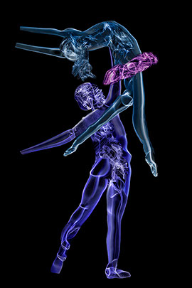 Das letzte Rauchbild der Serie hier ist eine Montage von unzähligen Partien aus den einzelnen Rauch-Dateien. Als Unterlage für die Gestalung diente eine Bleistiftzeichnung des Ballett-Paars. Darüber wurden die einzelnen Ausschnitte von Rauch gelegt. Das Ergebnis ist eine Photoshop-Datei mit über 100 Ebenen.